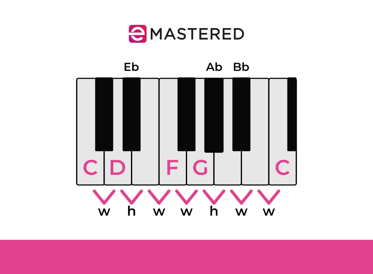 تخيل أنك تجلس أمام البيانو. للعثور على مقياس السلم الموسيقي الطبيعي الأصغر، يمكنك استخدام النمط التالي من الخطوات الكاملة (W) ونصف الخطوات (H)، مع تحديد المسافة بين النغمة والأخرى: