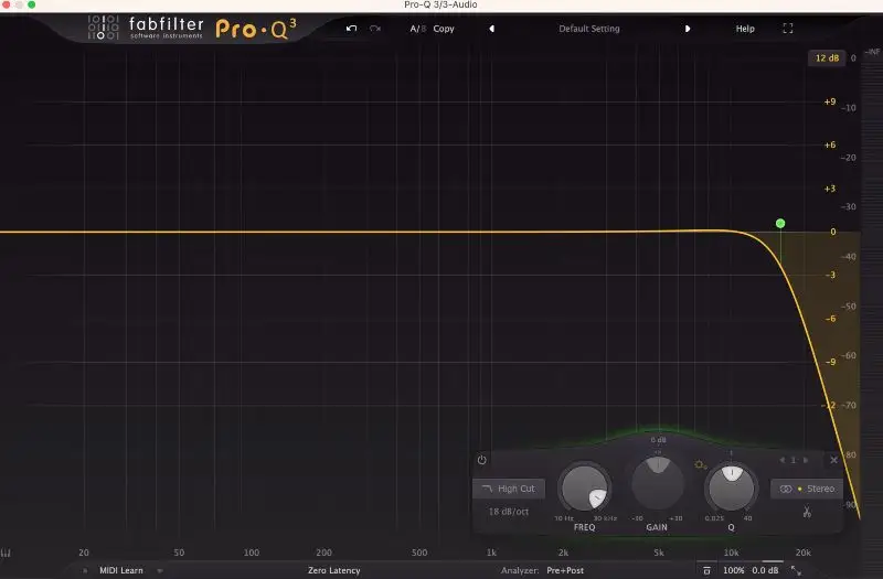 جمال العمل بهذا الارتفاع العالي في نطاق التردد هو أنك لا تلمس الهشاشة والوضوح المهم الذي تحدثنا عنه للتو حول 5 كيلو هرتز. بدلاً من ذلك، أنت تقوم فقط بتشذيب الأشياء العالية جداً التي لا تضيف الكثير إلى الفخ ولكن يمكن أن تتراكم وتؤثر على وضوح المزيج الخاص بك.