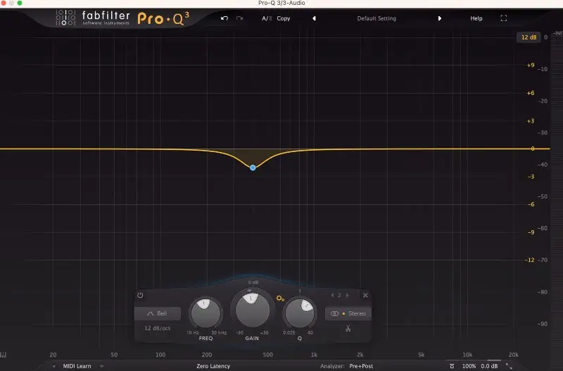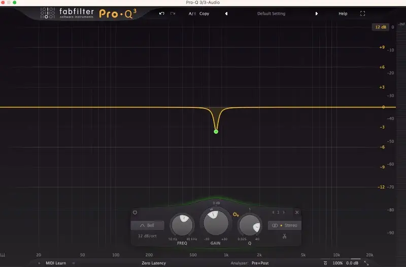 بالنسبة لهذا الدليل، سأستخدم معادل الصوت FabFilter Pro-Q3 لأنه معادل الصوت المفضل لدي في الصندوق. ومع ذلك، لا تحتاج إلى هذا المعادل للحصول على نتائج رائعة. أي معادل صوت لائق يمكنه القيام بالمهمة. المهم هو الأرقام وكيفية استخدامها.