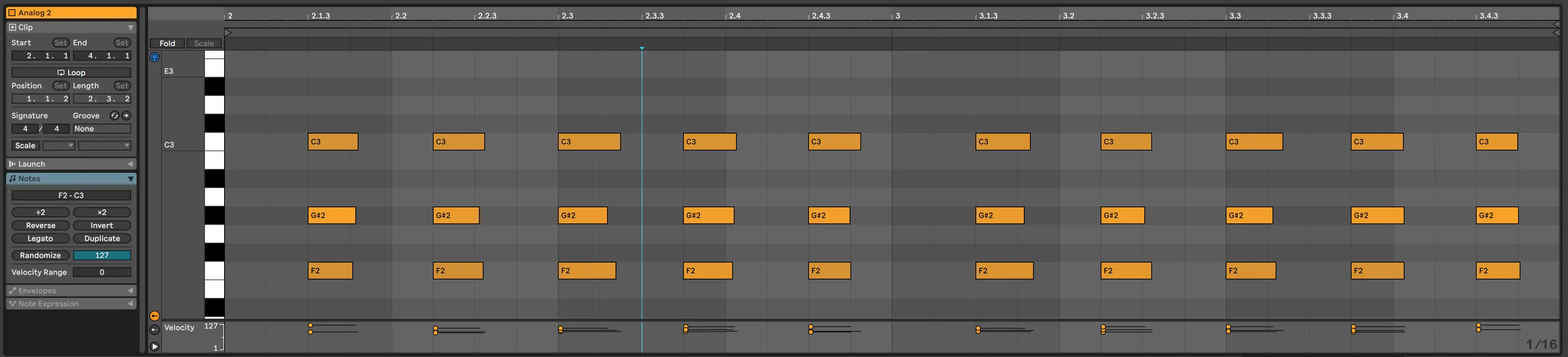 I should also mention that one of the most important elements of making techno music is throwing curveballs. The more and more duplicates you make of a four-bar groove, like the one above, for example, the more changes you should make so that the listener thinks they know what to expect, though it's something completely out of the ordinary each time.