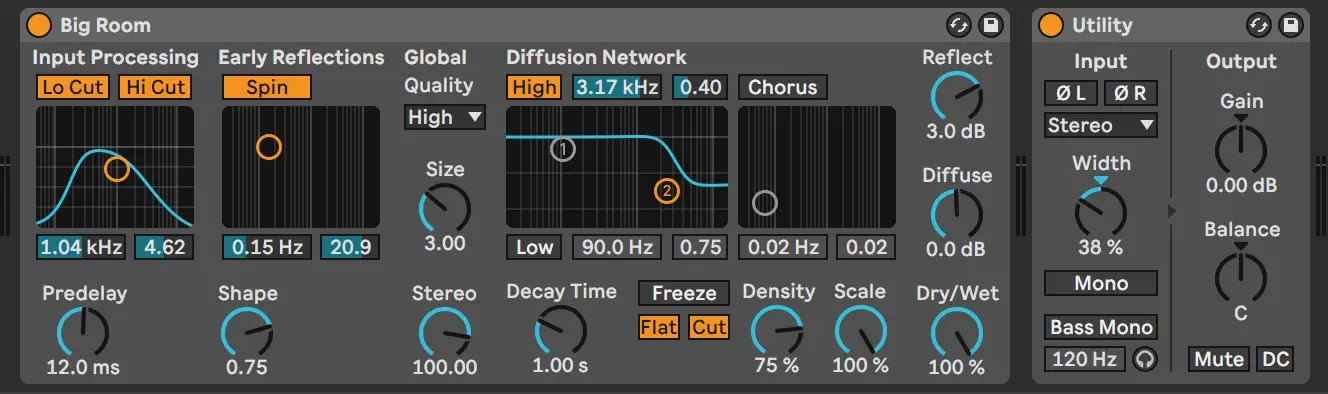 If you're going for an old-school style of techno, you can also put your reverb in mono, so it's straight down the middle.