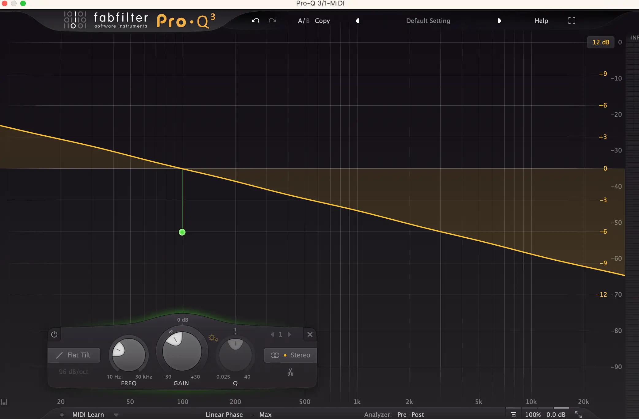 Pokud se podíváme na obrázek výše, který obsahuje sklon 96 dB/oktávu (nejstrmější sklon, který je u FabFilteru Pro-Q 3 k dispozici), máme stále sklon. Nejedná se o přímý pokles.