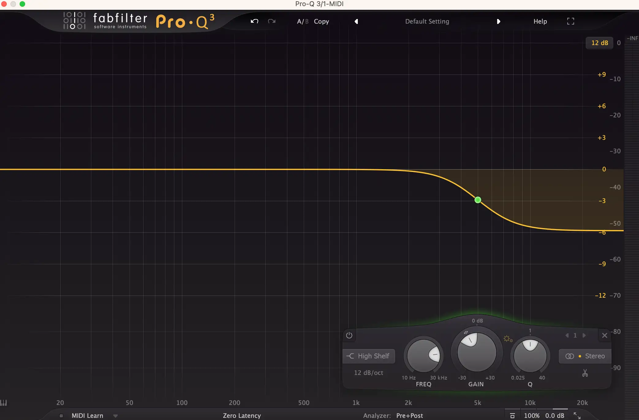 Představte si regálový filtr jako regulátor hlasitosti, který ovlivňuje vše pod (nebo nad) určitým frekvenčním bodem. Z definice je to docela jednoduché! Zatímco nízký shelf se stará o všechny basové frekvence, jeho příbuzný, vysoký shelf, se stará o vysoké frekvence.