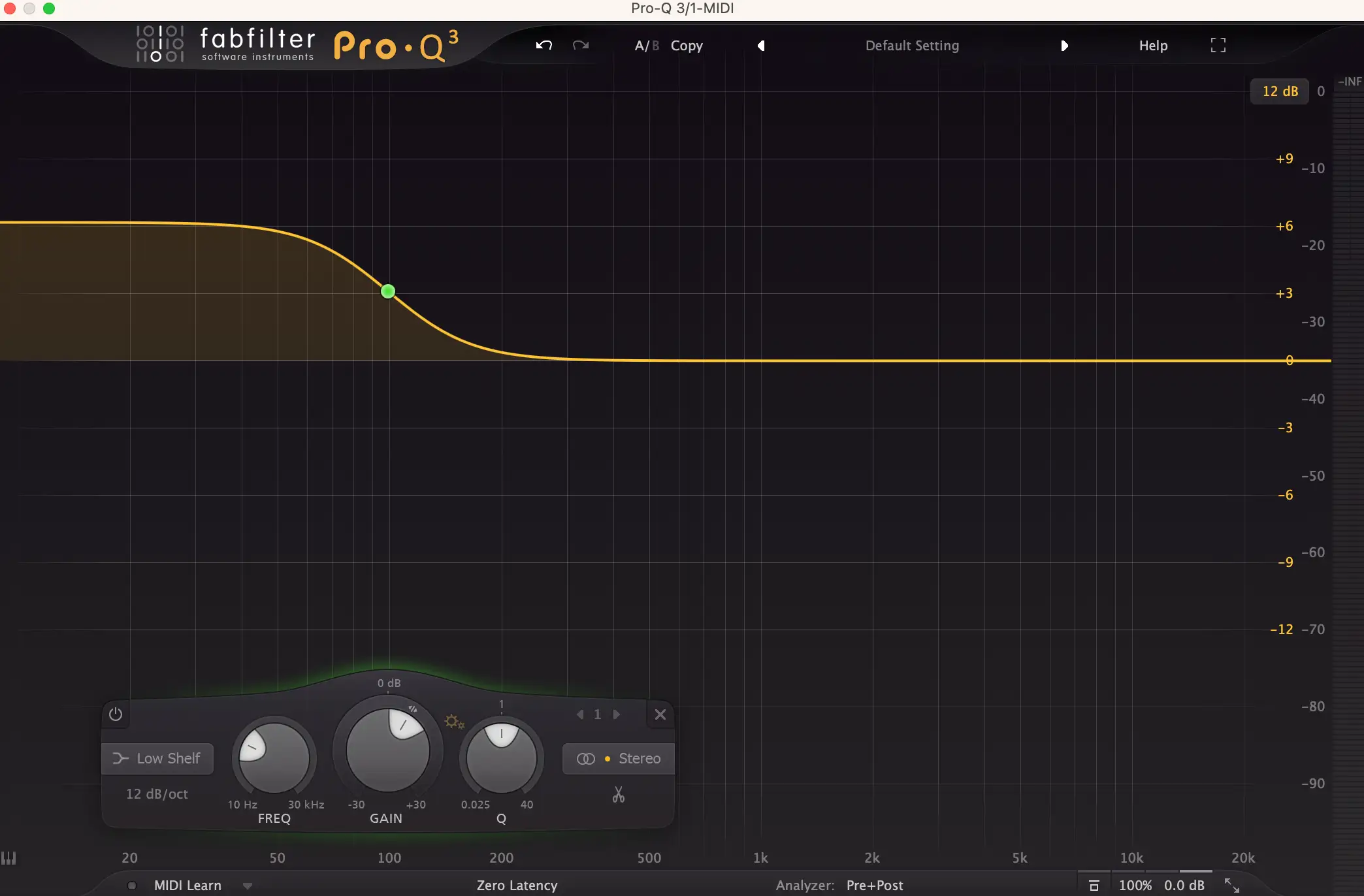 Stejně jako u všech forem ekvalizace platí, že méně je často více, zejména u zesílení s nízkou úrovní. Příliš mnoho v tomto frekvenčním rozsahu s nízkopolohovým ekvalizérem může přebít váš mix. Pokud opravdu potřebuji velké zesílení nízkopolohového ekvalizéru, obvykle ho spojím s vysokofrekvenčním filtrem, abych nevyvolal spoustu neslyšitelného bahna.