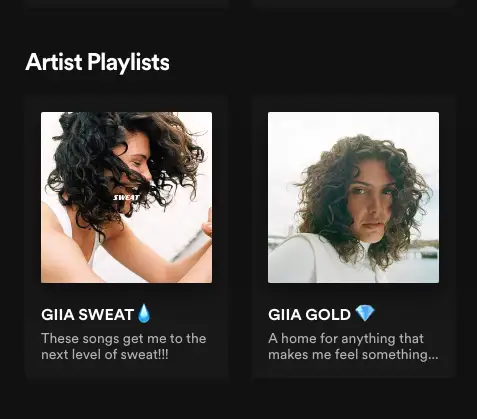 Sie können @tags auch verwenden, um auf Songs, Alben, Wiedergabelisten und andere Künstler auf Spotify zu verlinken.
