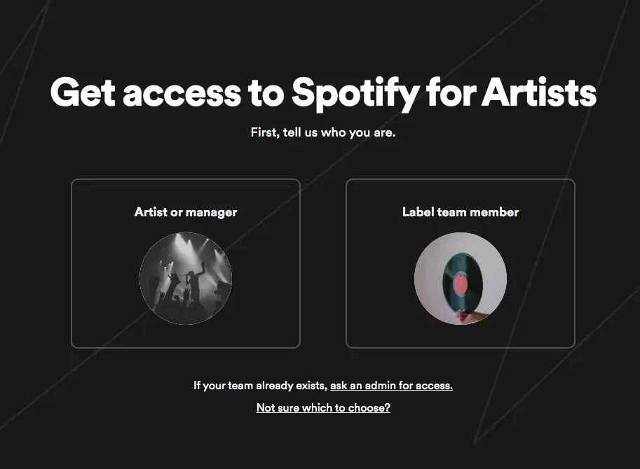 Wenn Sie einen der bevorzugten Anbieter von Spotify nutzen (wie CD Baby oder Distrokid), erhalten Sie automatisch Zugang zu Spotify For Artists und können sofort mit der Anpassung beginnen! Wenn nicht, befolgen Sie die folgenden Schritte, um Zugang zu erhalten.