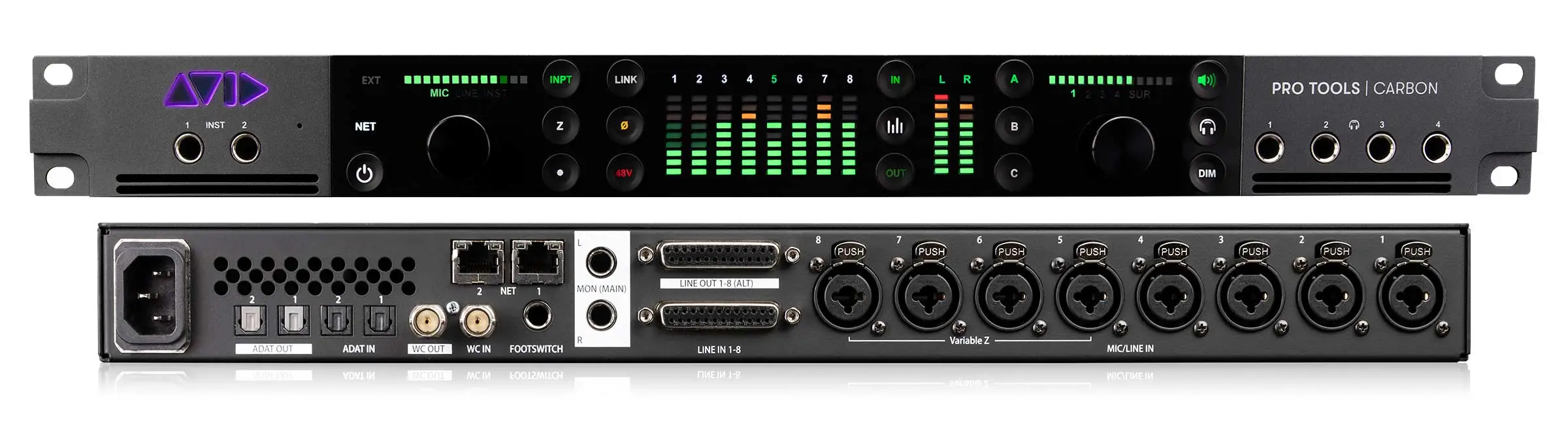 Dieses Rackmount-Audio-Interface wird über ein Ethernet-Kabel mit Ihrem Mac verbunden. Zusammen mit der externen Stromversorgung bedeutet dies, dass das Carbon eine phänomenale Klangqualität mit außergewöhnlich niedriger Latenz bietet.