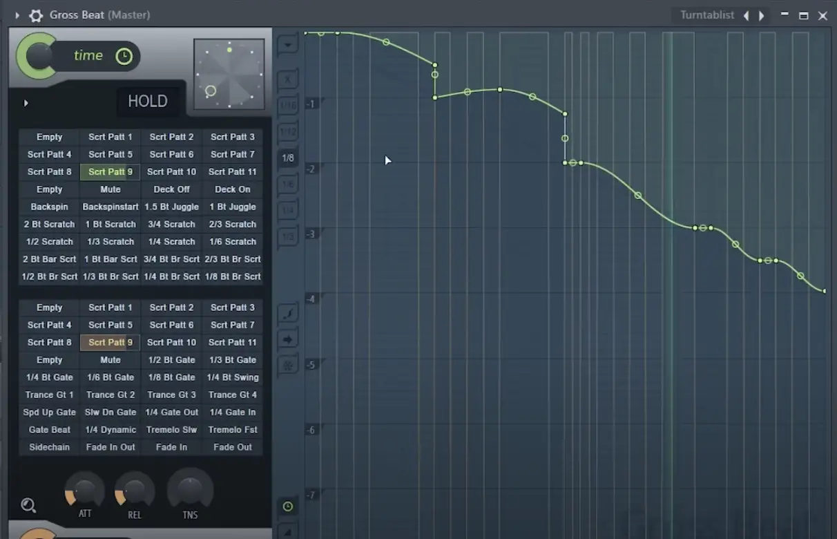 Wir können auch zum Preset "Turntablist" navigieren, wo wir eine Reihe einzigartiger Scratching-Muster finden. Ich liebe es, dieses Preset über meinen gesamten Mix zu legen, um diese Old-School-Scratches im Stil von Joe Hahn zu erhalten.