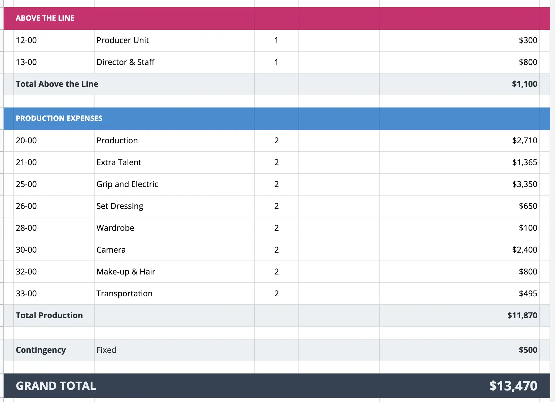 Produktionssets und Veranstaltungsorte machen einen großen Teil des Budgets aus und können entweder in Stundenblöcken oder tageweise gemietet werden. Einige Veranstaltungsorte bieten Wochenend- oder Mehrtagestarife mit einem Preisnachlass an.
