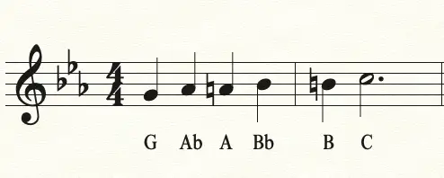 C-B-Bb-A-Ab-G-Gb-F-E-Eb-D-Db-C