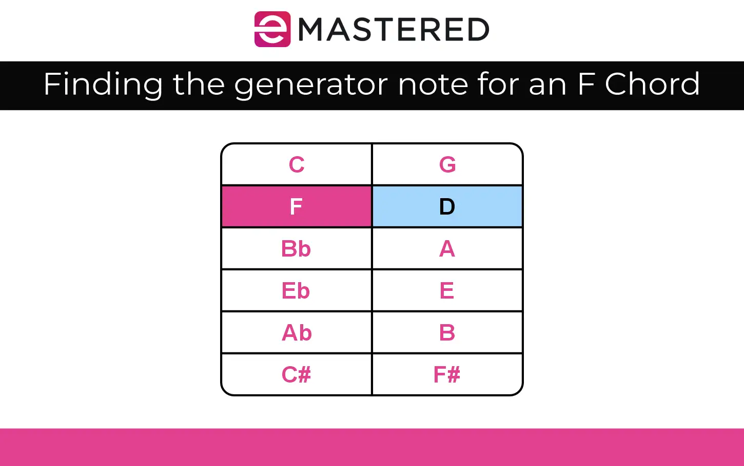 Η νότα-γεννήτρια είναι το αρνητικό αντίστοιχο της νότας της ρίζας της αρχικής συγχορδίας. Στο πρώτο παράδειγμα (Φα μείζονα) η βασική νότα είναι το Φα. Η νότα γεννήτριας είναι επομένως το Ρε.