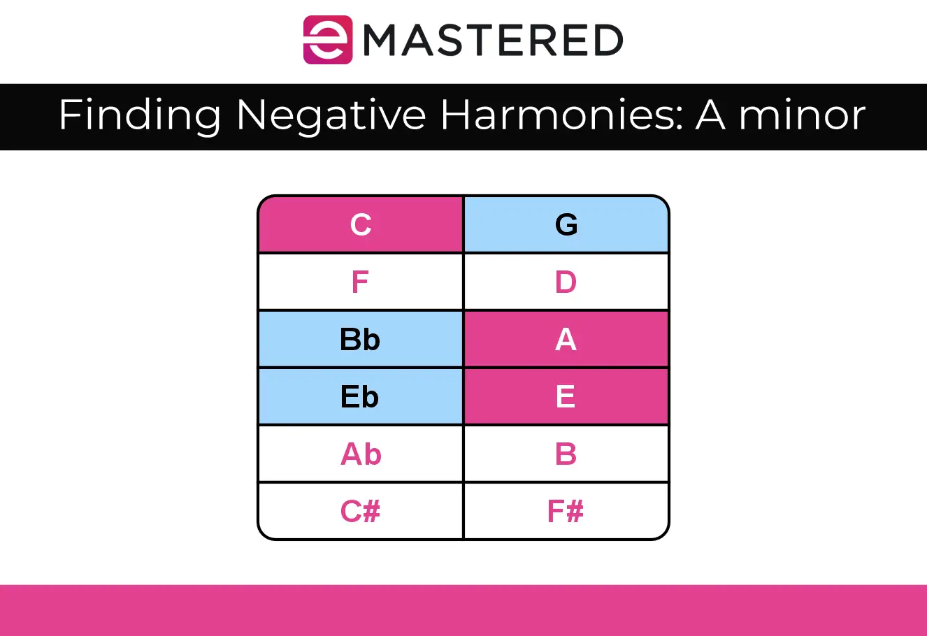Στη συνέχεια αντιστρέφουμε τους τύπους συγχορδιών - από μείζονα σε ελάσσονα και αντίστροφα. Καταλήγουμε σε αυτές τις αρνητικές συγχορδίες:
