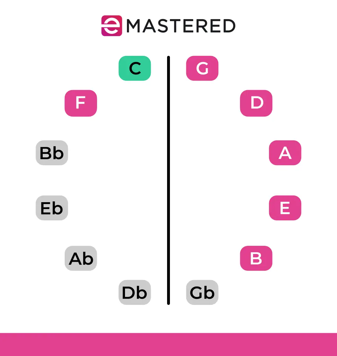 Αν μετατοπιστούν κατά μια τέλεια πέμπτη γίνονται: C, G, Bb και F.