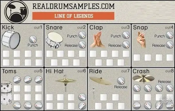 Aunque puede que el plugin de batería Line of Legends no tenga un aspecto tan técnico como otros VST de batería gratuitos de esta lista, no lo subestimes. En este VST de batería gratuito encontrarás 47 muestras de alta fidelidad y ocho canales de salida individuales. Para dar forma a estos tambores reales, puedes utilizar los controles de ataque, liberación y pegada.