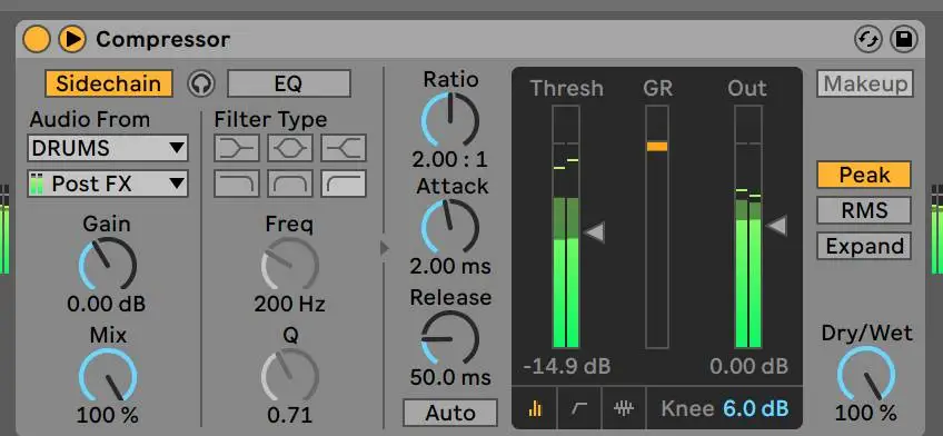 Tenga en cuenta que estos son sólo los ajustes básicos del compresor. Los compresores más especializados pueden tener otros controles útiles como un mando dry/wet, pero estos parámetros básicos deberían estar disponibles en cualquier compresor estándar.