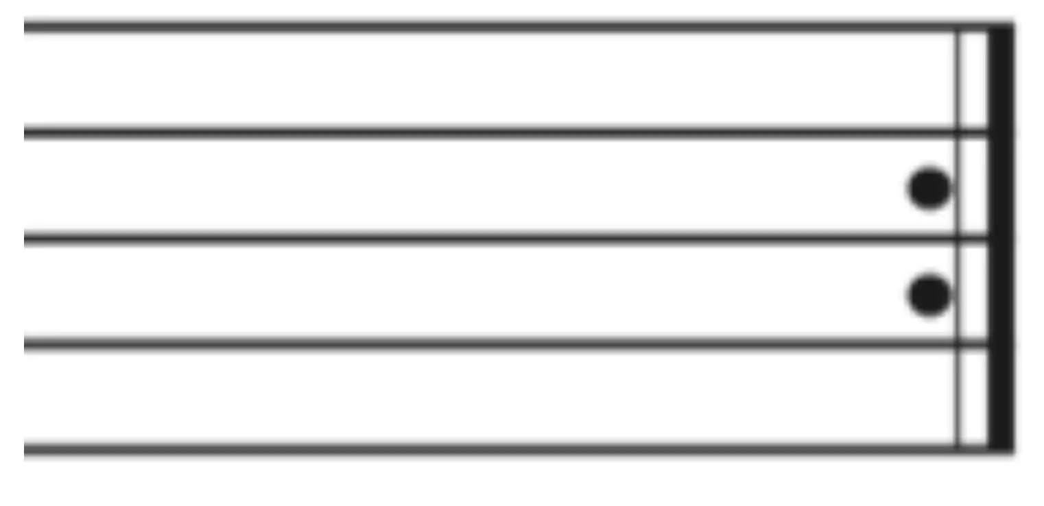El símbolo de repetición final tiene el mismo aspecto que el símbolo de repetición inicial, pero en la cola derecha de la sección repetida. Este símbolo ayuda a distinguir dónde termina una sección repetida.