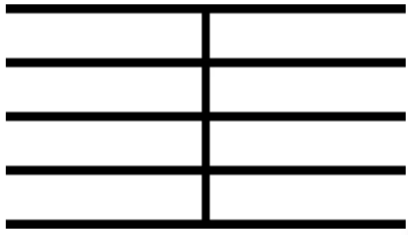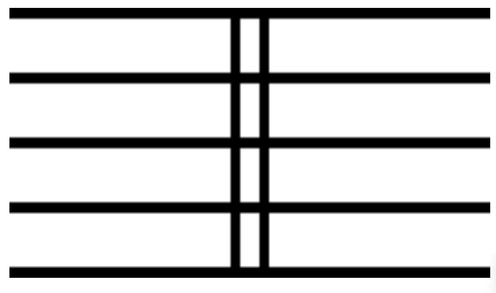 La línea de doble barra tiene dos líneas verticales que se utilizan para comunicar el principio y el final de las secciones. Por ejemplo, puedes utilizar líneas de doble barra para mostrar el paso de la estrofa de una canción al estribillo.