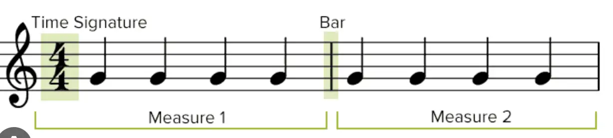 Los términos compás y medida son esencialmente la misma cosa, por lo que hay una medida en un compás. La palabra "compás" puede referirse específicamente a la línea de compás entre dos medidas, pero coloquialmente, el término es sinónimo de medida.
