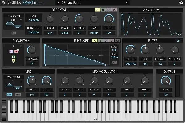 L'une des choses qui distingue vraiment Exakt Lite des autres synthétiseurs FM du marché est l'intuitivité de son interface. Même si vous n'êtes pas familier avec les profondeurs de la synthèse FM, vous pouvez avoir une expérience amusante et agréable en utilisant Exakt Lite. SONICBITS a intentionnellement simplifié les contrôles de son interface afin que même quelqu'un ayant une compréhension incroyablement basique de la synthèse FM puisse s'en servir et faire de la musique immédiatement.