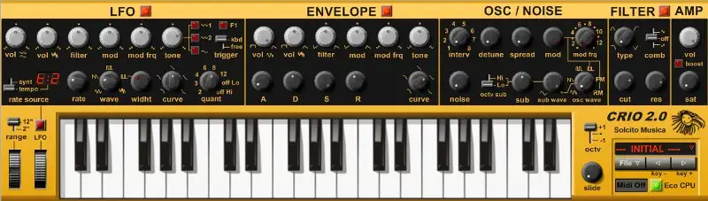 Que vous recherchiez des leads, des synthés solos, des basses synthétiques, des arpèges ou des effets, Crio de Solcito Musica est un excellent choix ! La beauté de ce synthé VST gratuit est sa facilité de navigation, même avec les nombreuses fonctionnalités qu'il offre. Il est si facile de modifier les sons à la volée.