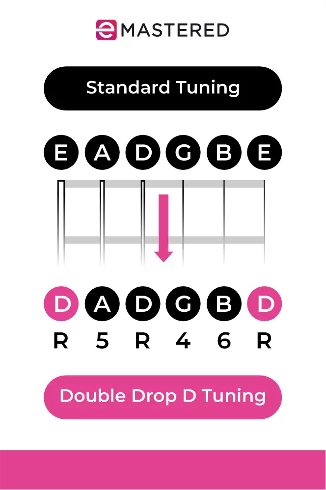 Per passare dalla normale accordatura drop D a quella double drop D, è sufficiente accordare la corda del Mi acuto a un Re.