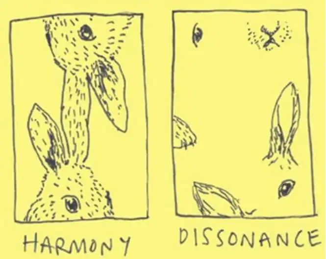 L'armonia è quando le cose suonano piacevolmente insieme, quando fluiscono in uno stato che chiunque può dire che suona "bene". La dissonanza, invece, è quando le cose suonano tese o semplicemente non vanno bene. La spinta e l'attrazione tra questi due elementi crea grande musica, quando è fatta bene. Le parti dissonanti di una canzone rendono l'accordo iniziale molto più dolce.