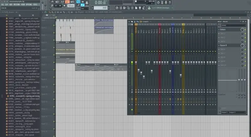 Sul lato sinistro si trova il browser dei campioni, dove è possibile visualizzare l'anteprima e selezionare i file audio. Al centro si trova la playlist o timeline, dove è possibile registrare e posizionare i campioni nella disposizione desiderata. La finestra sul lato destro è il mixer, dove è possibile regolare i livelli e aggiungere effetti audio.