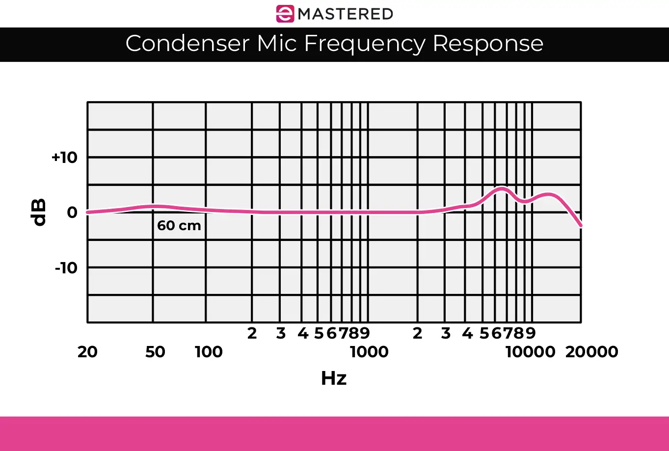 Dynamiske mikrofoner har gjerne en smalere frekvensrespons, som vanligvis ligger mellom 50 og 15 000 Hertz. Kondensatormikrofoner har en bredere frekvensrespons, og har lettere for å fange opp høye frekvenser mellom 20 og 20 000 Hertz. Kondensatormikrofoner er ofte mer følsomme enn dynamiske mikrofoner.