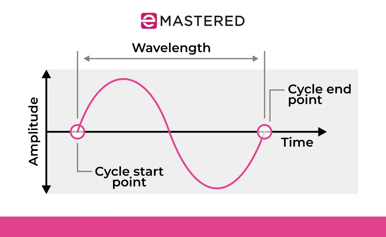 - λ (bølgelengde): Lengden på en hel syklus av bølgen