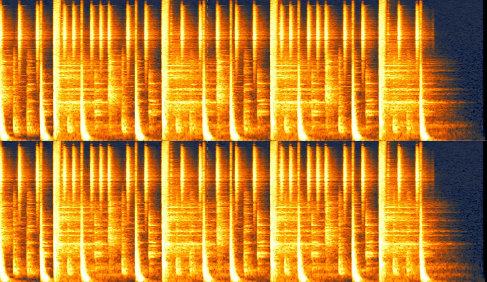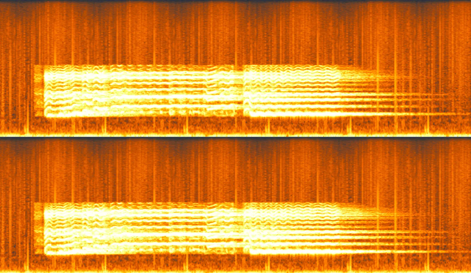 I alle eksemplene nedenfor bruker jeg iZotopes RX-editor til å vise spektrogrammer. I RX er det slik at jo lysere et bilde er, desto større amplitude har en tone.