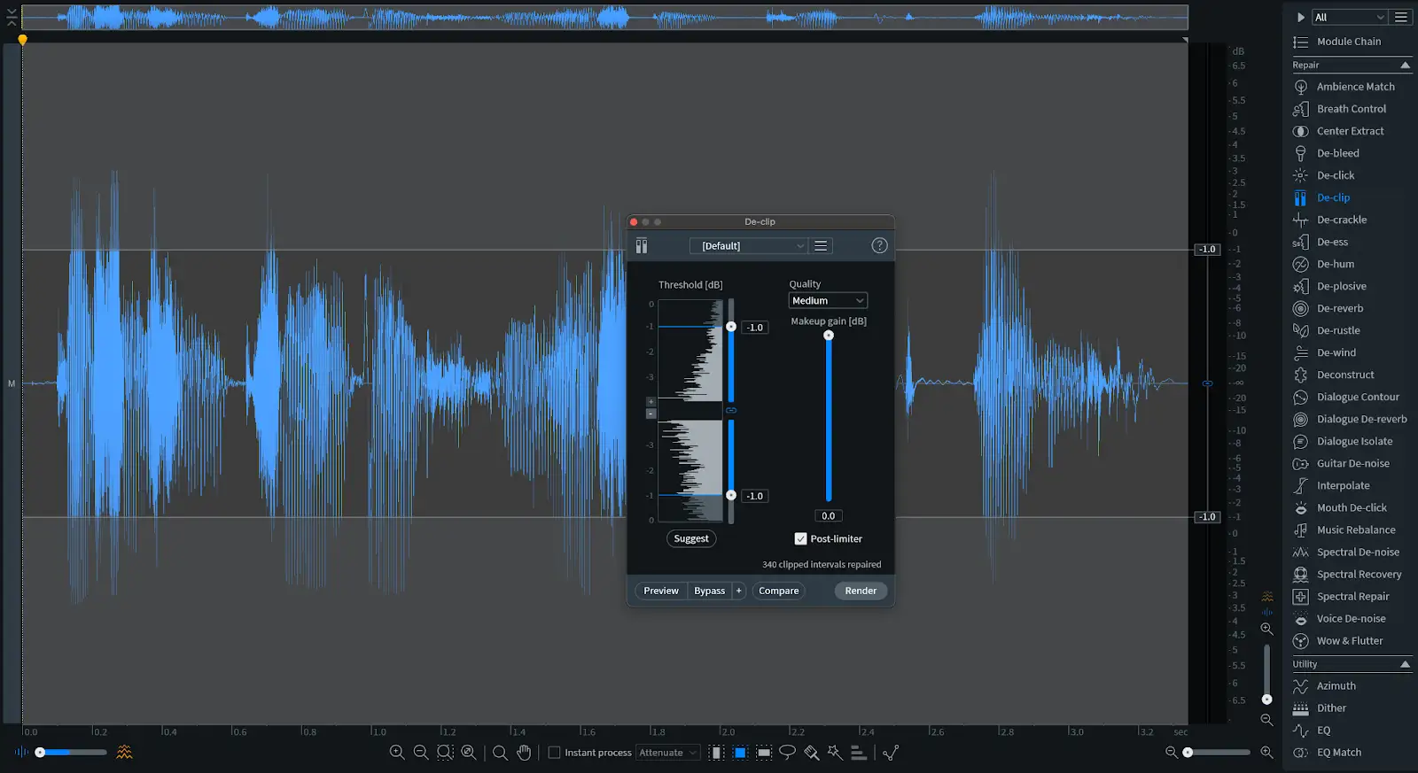De software bevat verschillende manieren om de kwaliteit van de uitvoer te regelen, waaronder een post-limiter om clippen op de gerepareerde golfvorm te voorkomen. Met de preview-knop kun je de aanpassingen in realtime beluisteren terwijl je alles bijstelt. Er is ook een handige 'Suggest' knop die het giswerk voor een deel wegneemt.