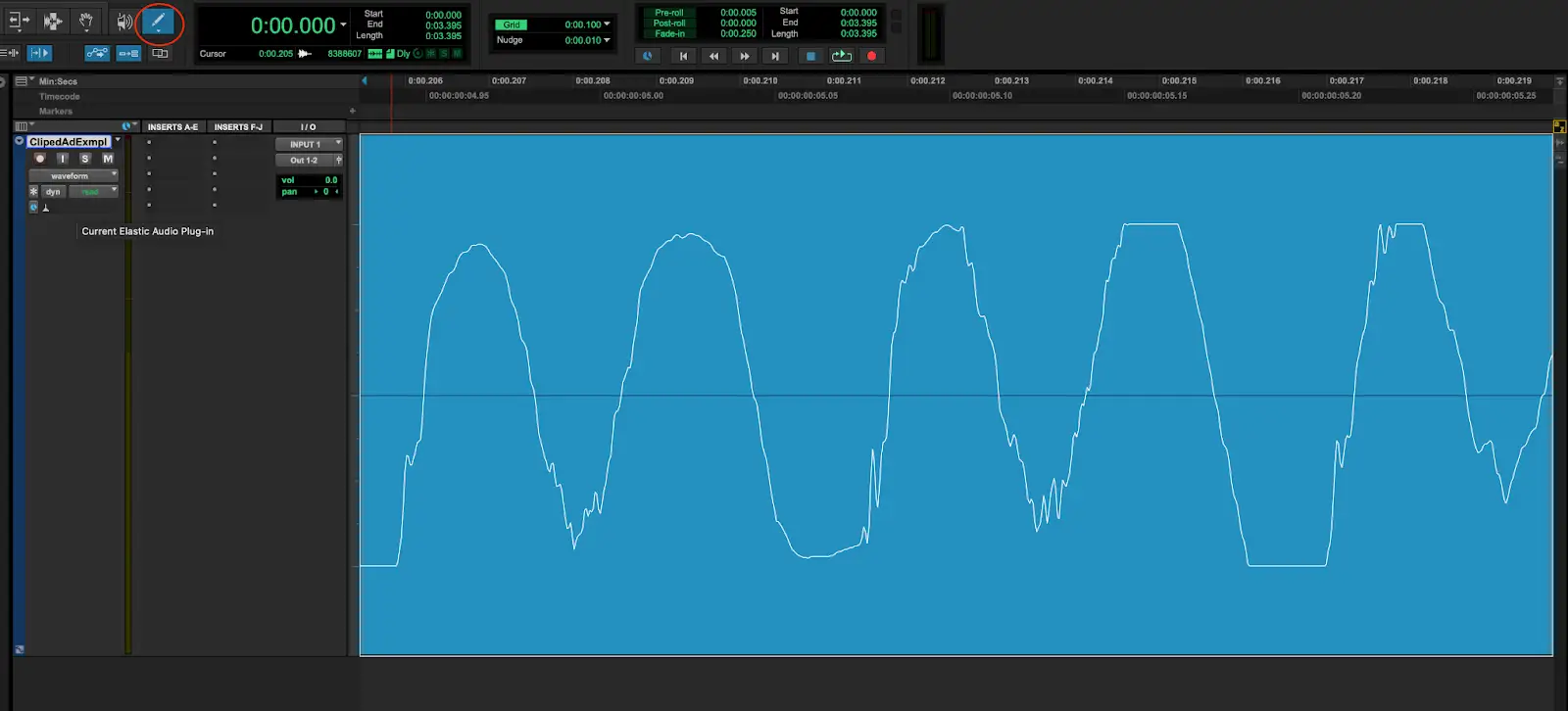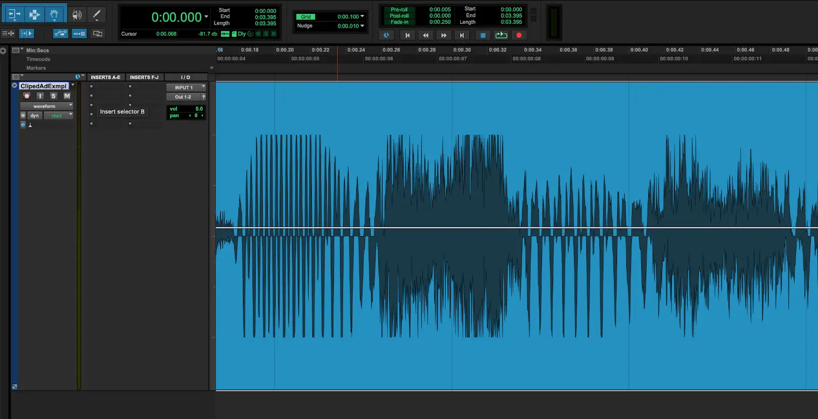 Hier is de audiogolfvorm van ons vervelende clippingvoorbeeld in Pro Tools: