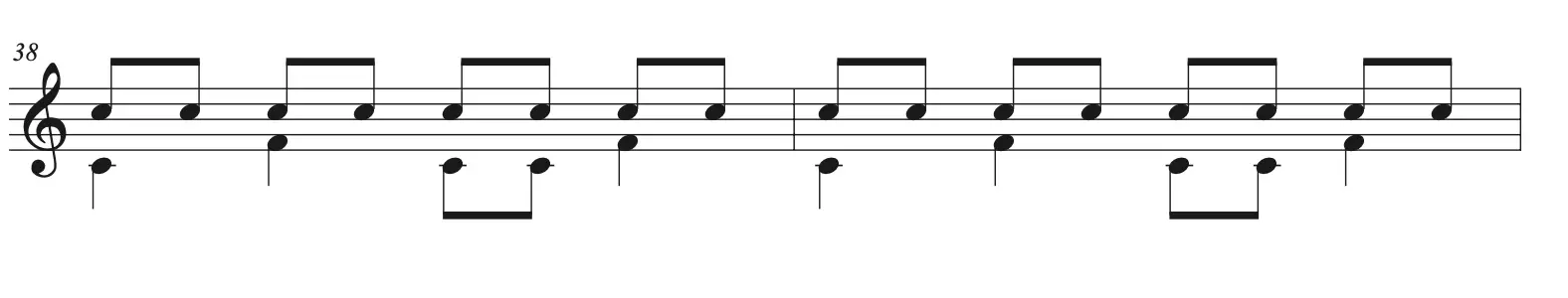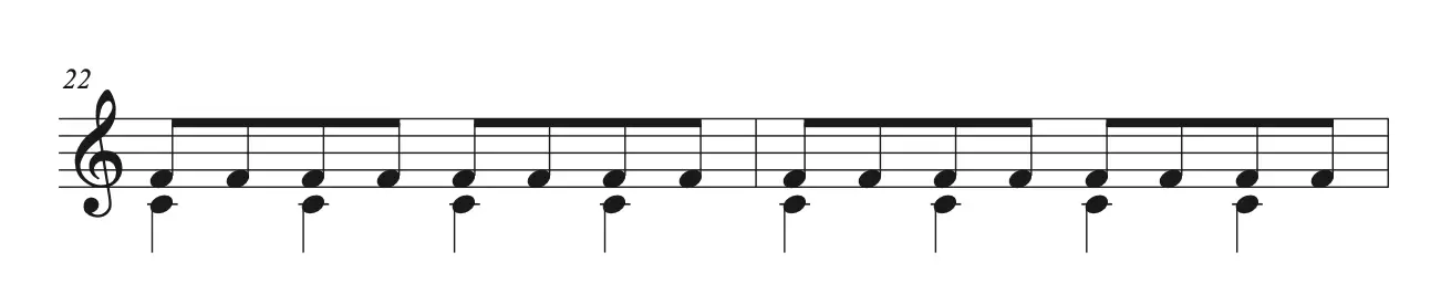 Elk voorbeeld is geschreven in standaardnotatie en heeft een audiosample. In elk voorbeeld speelt een metronoom de puls telkens in hetzelfde tempo, zodat je kunt horen hoe de patronen op elkaar inwerken. Het tempo van elk voorbeeld is hetzelfde, en de eerste maat van elk voorbeeld is alleen de metronoom, zodat je een gevoel krijgt voor de puls.