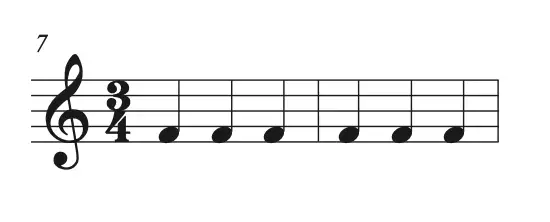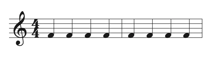 In het bovenstaande voorbeeld, in tekstvorm uitgedrukt als 4/4, zijn er vier tellen in elke maat, en elk van die tellen duurt één tel. Dit is een van de meest voorkomende maatsoorten en is vrijwel de norm in de meeste populaire muziek. Je kunt ook 3/4 tijd tegenkomen (soms 'walstempo' genoemd), die drie tellen per maat heeft, en 2/4 (of 'marstempo').