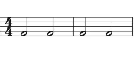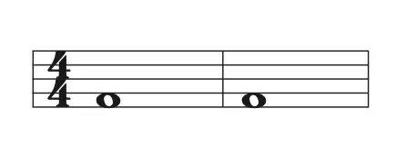 Beginnend bovenaan de keten hebben we de hele noot - die vier tellen duurt.