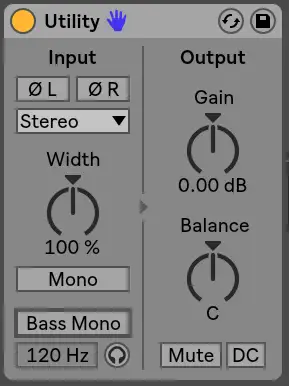 Miksowanie subwoofera w mono jest dość proste. Większość programów DAW pozwala wstawić wtyczkę mono lub użyć narzędzia szerokości stereo, aby zawęzić pole stereo do mono. W rzeczywistości narzędzie Ableton ma nawet przycisk "Bass Mono", który pozwala dostosować zakres częstotliwości, który chcesz zachować w mono.