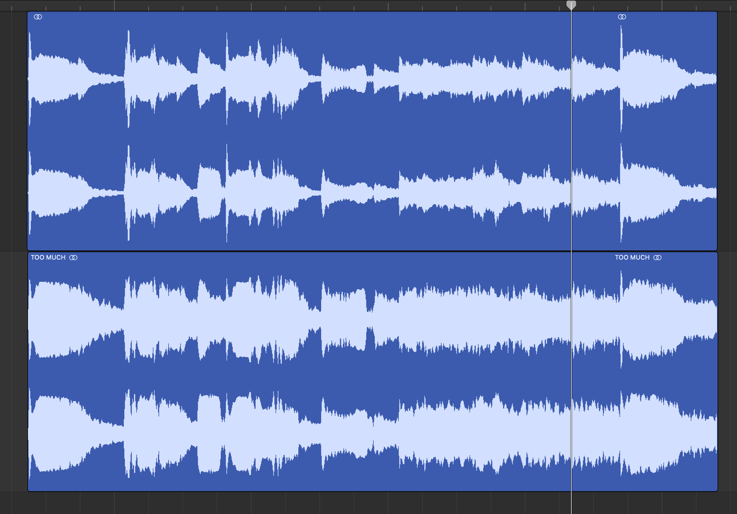 Jednym z najprostszych sposobów na wykrycie utworu, który został nadużyty przez kompresor, nawet przed naciśnięciem przycisku odtwarzania, jest spojrzenie na kształt fali.