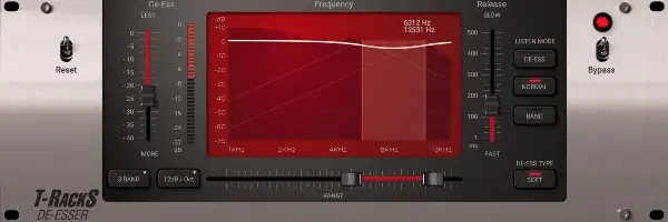 No entanto, embora pudéssemos ficar aqui a falar sobre o T-Racks, estamos aqui para falar sobre o famoso plugin De-Esser da IK Multimedia. Dependendo da quantidade de precisão que precisa para a sua faixa, pode usar a operação de duas ou três bandas do plugin.