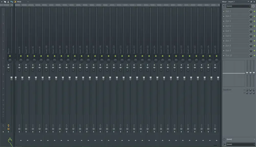 Não há muito para explicar, mas em alguns casos, mais é melhor. O FL Studio permite agora até 125 faixas de misturador.