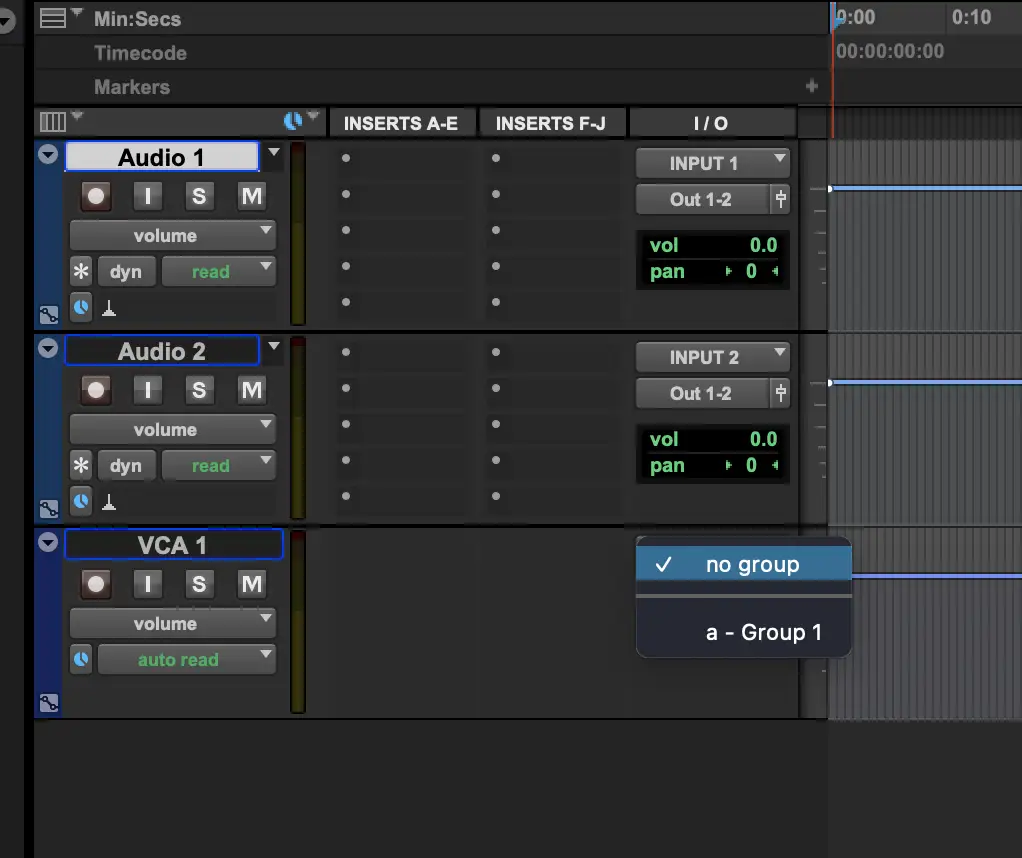Se estiver a utilizar o Pro Tools, o processo de configuração de um grupo VCA é (como seria de esperar) um pouco mais complicado.