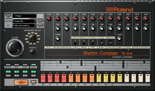A máquina de percussão 808 está repleta de várias funcionalidades e sons, incluindo o bombo, caixas, toms, claves, um cowbell, hi-hats, pratos e o todo-poderoso handclap.
