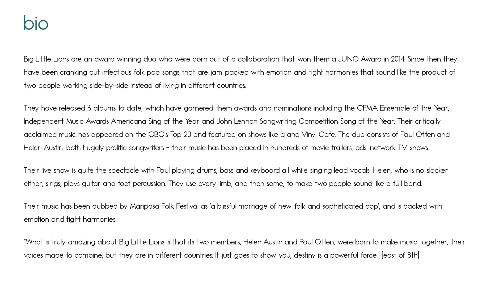 Um ótimo exemplo desta biografia mais personalizada pode ser visto com a artista indie pop Maude Latour: