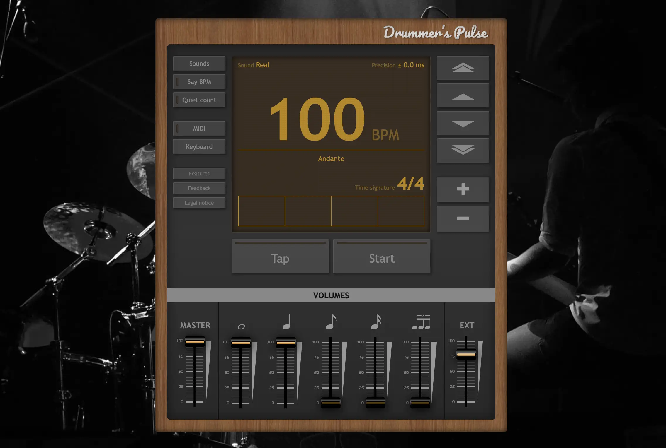 Este logic că toboșarii sau muzicienii cu experiență ritmică ar putea avea nevoie de mai multe caracteristici decât metronomul online tipic. Din fericire, Drummer's Pulse livrează. Acest metronom vă permite să setați butonul de redare prin intermediul tastaturii, controlului MIDI sau chiar să apelați la tempoul dorit. Este ușor să ajustați marcajele de tempo, semnătura timpului și să schimbați accentul pentru a lovi pe orice ritm. De asemenea, puteți trece prin mai multe sunete în timp ce lucrați la părțile dvs. ritmice.