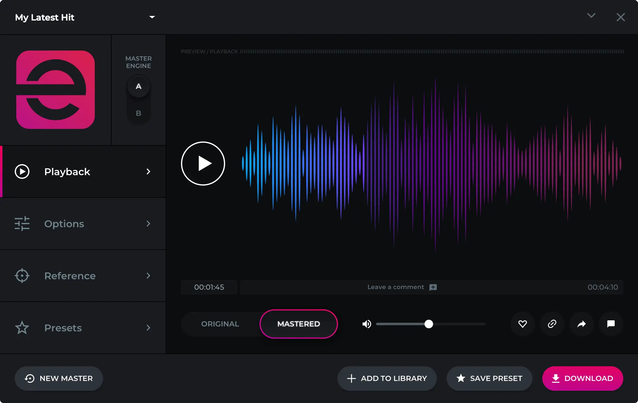 Utilizatorii pot încărca chiar și o piesă de referință pentru a ghida procesul de masterizare, asigurându-se că produsul final se aliniază cu viziunea lor artistică.