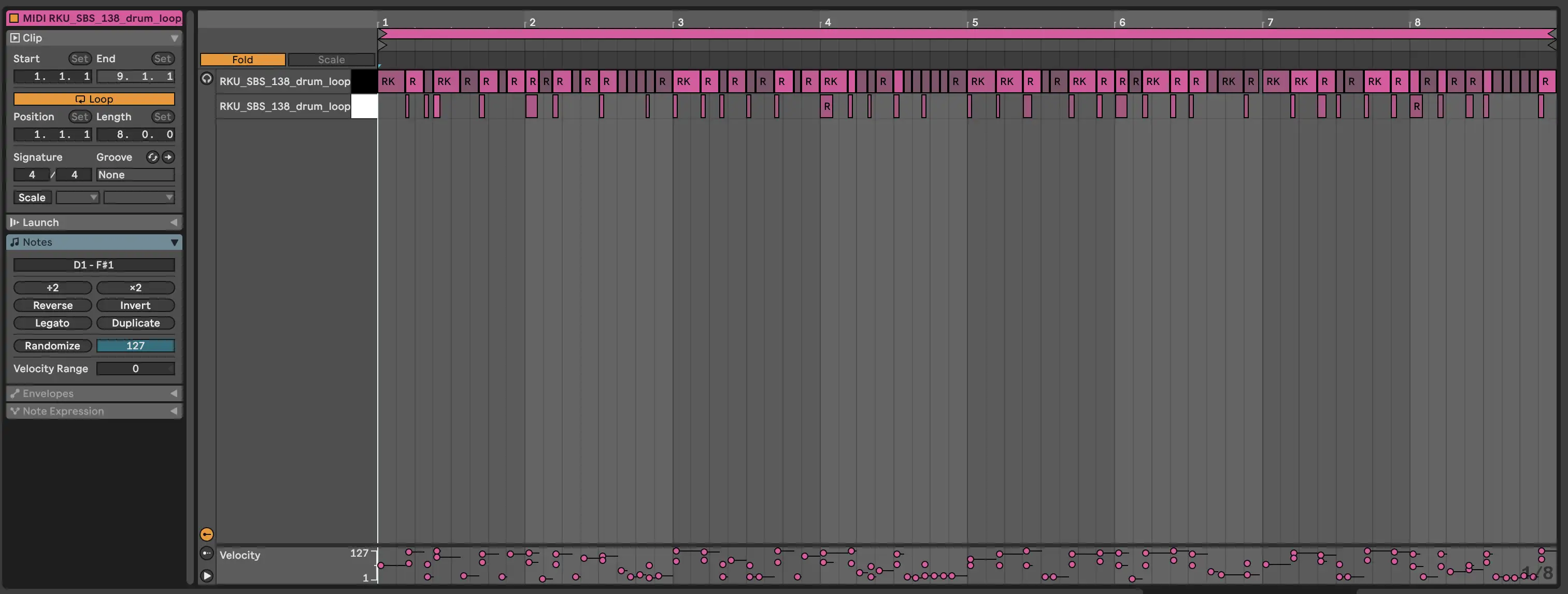 Buradan itibaren olasılıklar sonsuzdur. Bunları renklendirmek için üçlüler, rulolar veya salıncaklar kullanabilirsiniz. Burada gerçekten herhangi bir kural yoktur. Bununla birlikte, daha insani bir his için, bunları farenizle programlamak yerine bir MIDI davul pedinde çalabilirsiniz. İşte benim elde ettiğim kalıp: