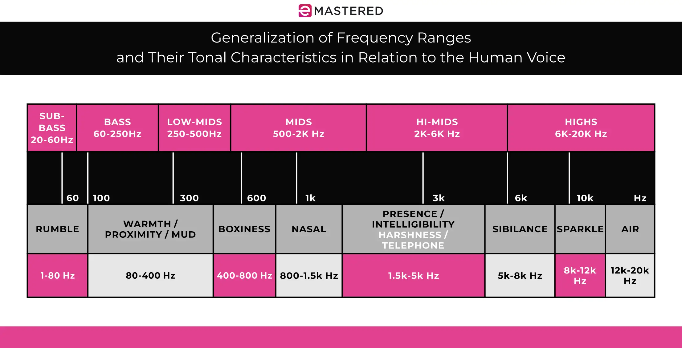 Unutmayın, tüm bu ayarlar genel bir kılavuzdur. Her şarkıcı ve stil kendine özgü ayarlamalara ihtiyaç duyacaktır, bu nedenle EQ uygularken ince ayar yapmak ve denemek için zaman ayırın. Ton şekillendirme konusunda daha derinlemesine bir araştırma yapmak isterseniz, frekans aralıkları ve bunların insan sesinin tonal niteliklerini nasıl etkilediğine dair kullanışlı grafiğimize göz atın: