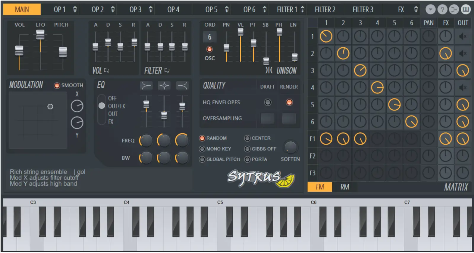 FL Studio'nun bu esnek synthesizer'ı hem additive hem de subtractive synthesis gerçekleştirebilir, bu da onu güçlü bir sanal enstrüman haline getirir. Sytrus, FL'nin Producer sürümü ile birlikte gelir ve hassas ses şekillendirme için titiz bir modülasyon matrisi sağlar. Orijinal sesinizi sıfırdan oluşturmak için ana arayüzden operatör modülüne, harmonik düzenleyiciye, filtreye, efekt modülüne ve modülasyon matrisine geçin.