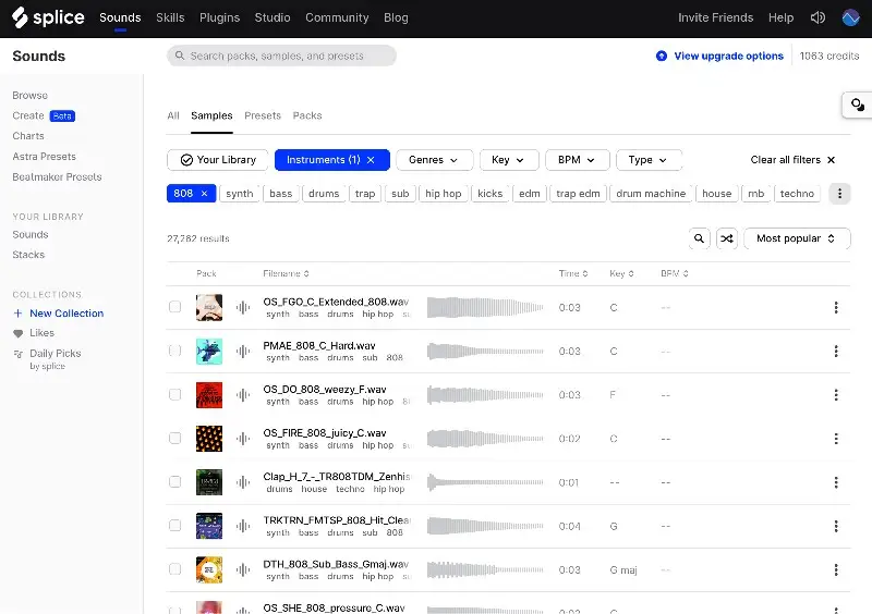 如果你已经有了一个器乐循环或和弦进行,就可以开始探索能与其他元素协调的 808 采样。可供选择的样本很多,尤其是在 Loopmasters 或 Splice 等样本平台上,它们提供了大量的样本库供你试验。