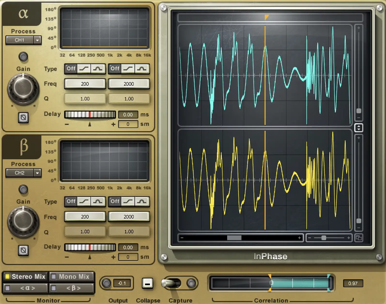 一种简单的方法是放大 DAW 中的波形,然后手动调整音轨的时间,直到波峰和波谷尽可能地一致。这样就能最大限度地发挥组合音效的效果。